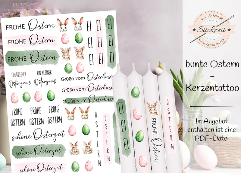 DIN A4 PDF-Vorlage für Kerzentattoos auf Wasserschiebefolie - Bunte Ostern.