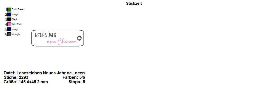 Lesezeichen - Neues Jahr neue Chancen - ITH-Stickdatei für den 13x18 Rahmen.