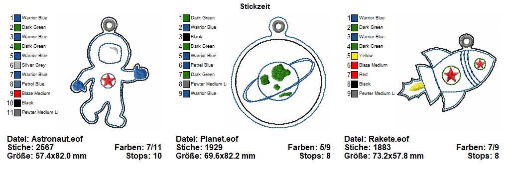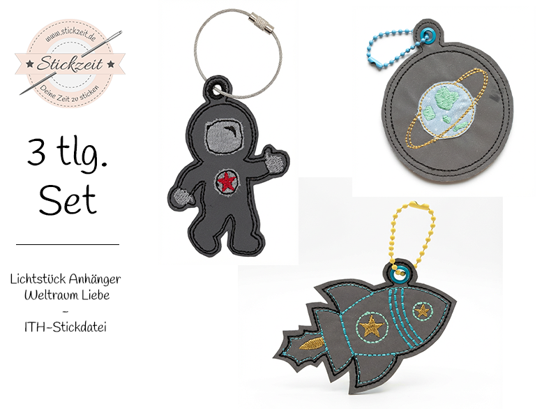 3 teiliges ITH-Stickdatei Set - Lichtstück Anhänger Weltraum - für den 10x10 Rahmen.