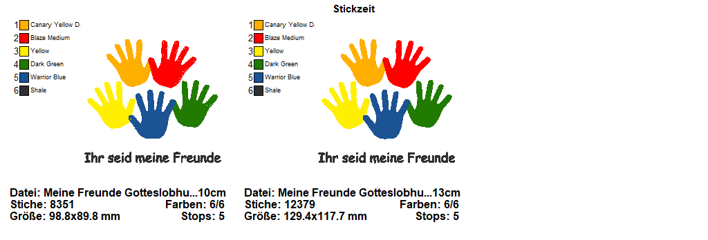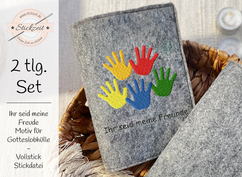 2 teiliges Vollstick Stickdatei Set mit christlichem Motiv - Meine Freunde - für den 10x10 und 13x18 Rahmen.
