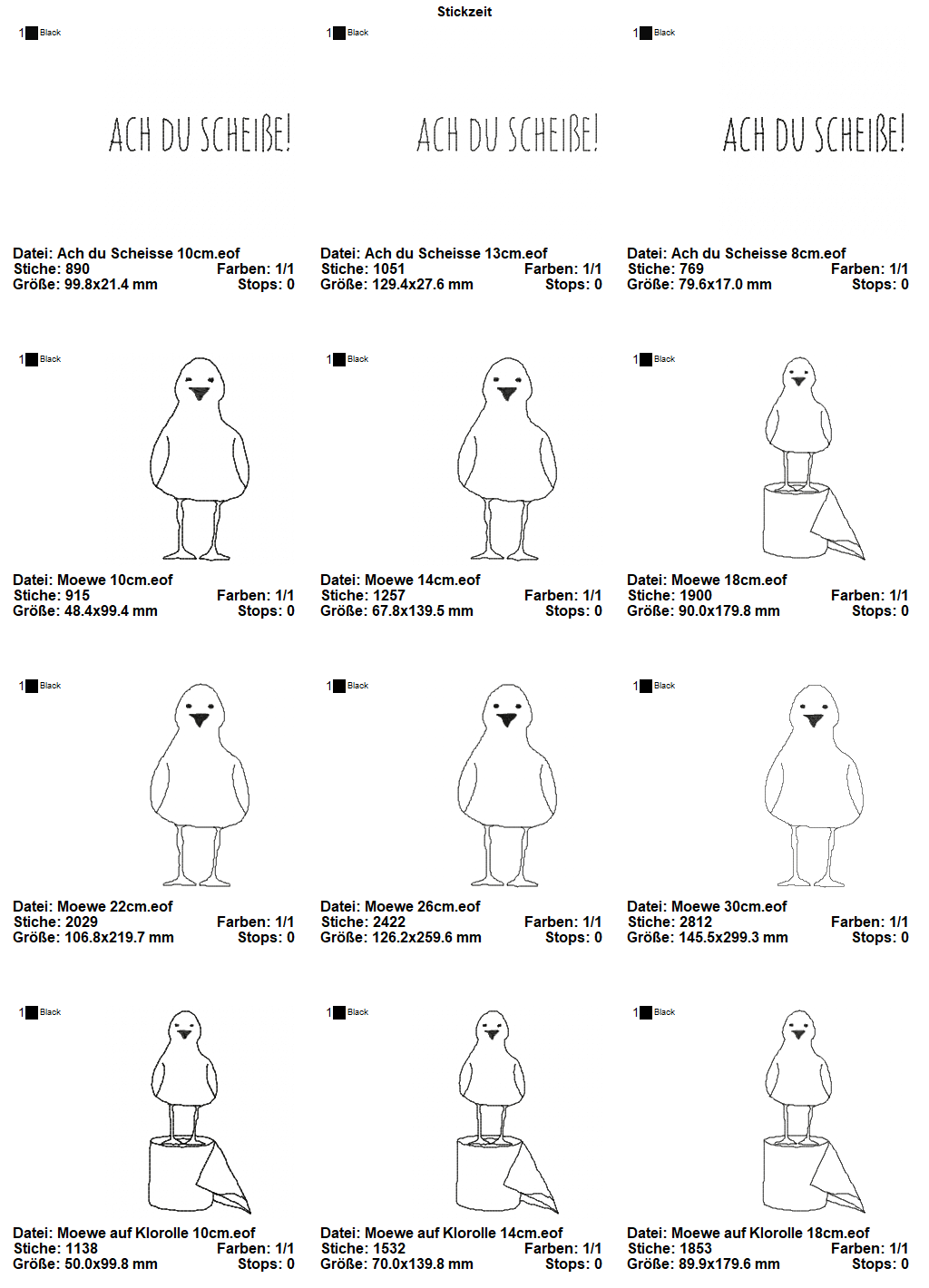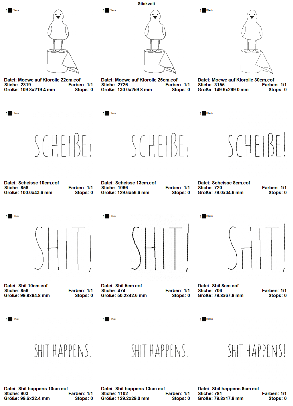 Es handelt sich nicht um fertig gestickte Produkte, sondern um eine Stickdatei für eine Stickmaschine, welche nach dem Bezahlen sofort als ZIP-Datei heruntergeladen werden kann.