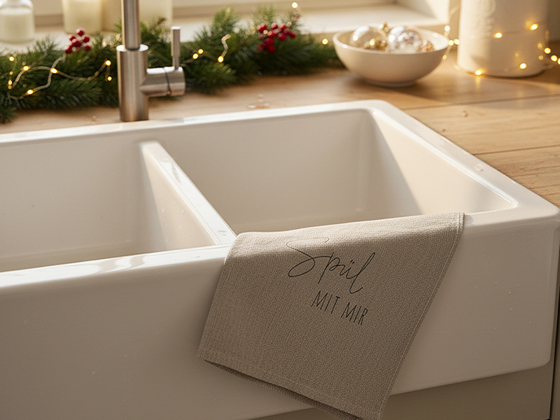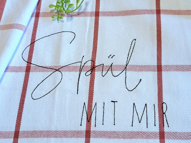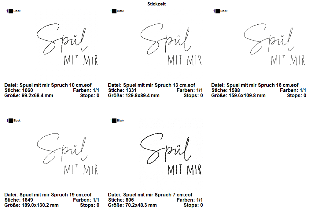 5 teiliges redwork Stickdatei Set mit dem Spruch - Spül MIT MIR - ab dem 10x10 zu sticken. Perfekt zum Beispiel für ein Geschirrtuch, das Du bestickst, faltest und jemandem ein Lächeln schenkst.