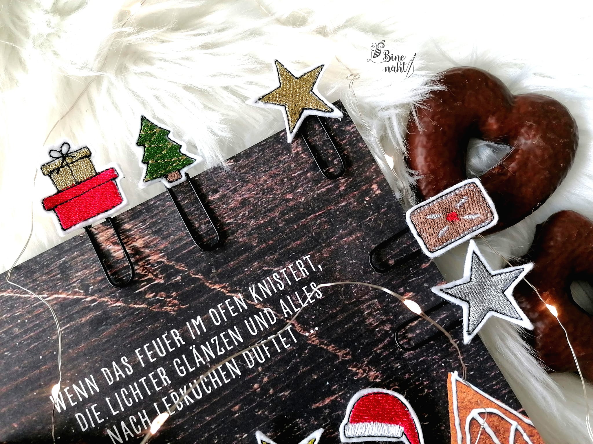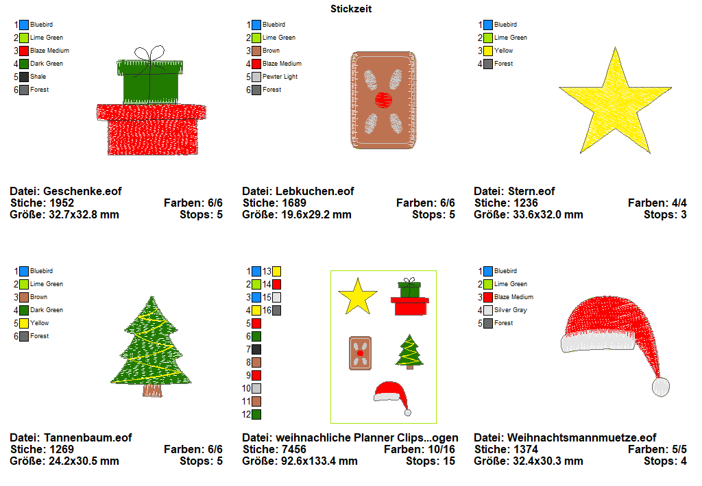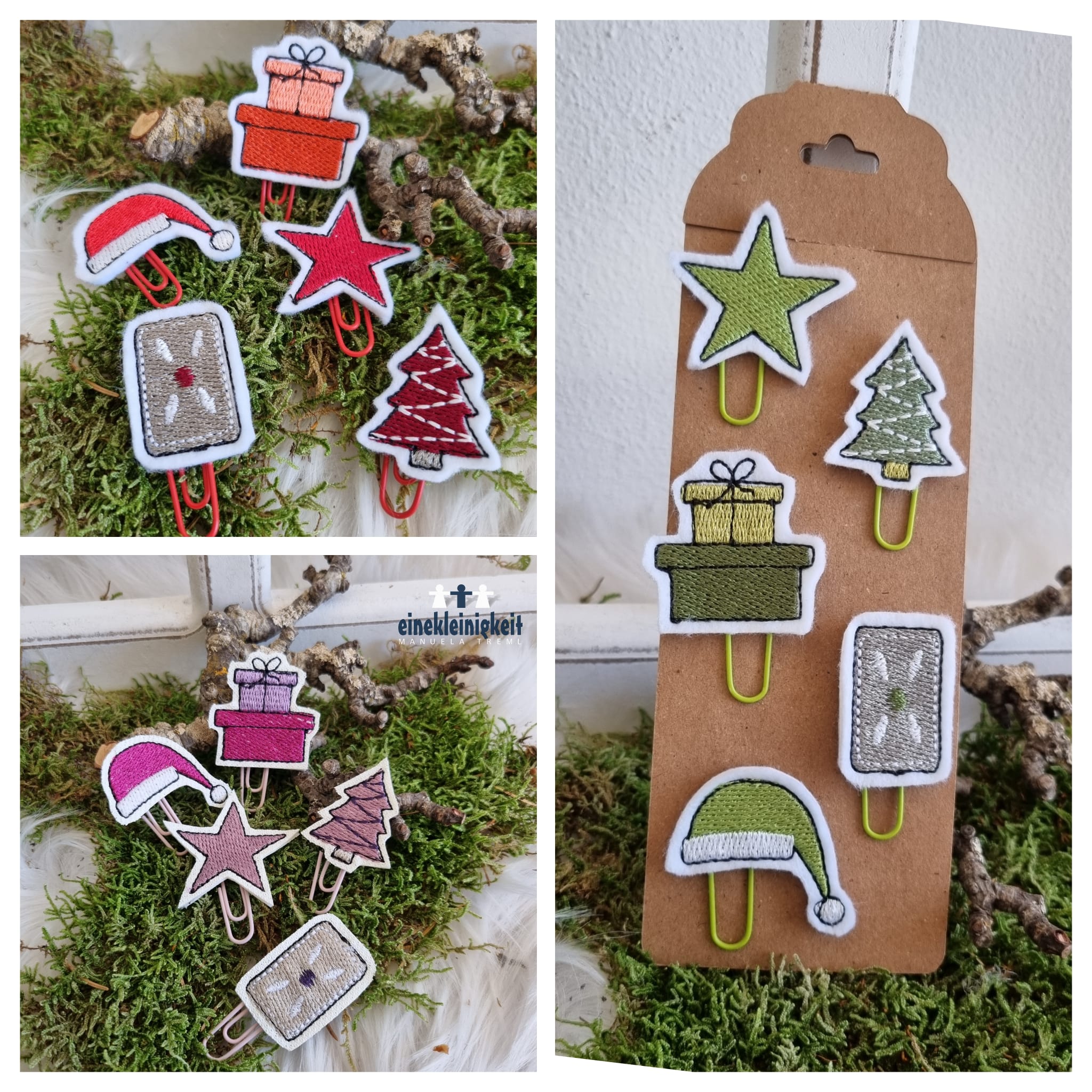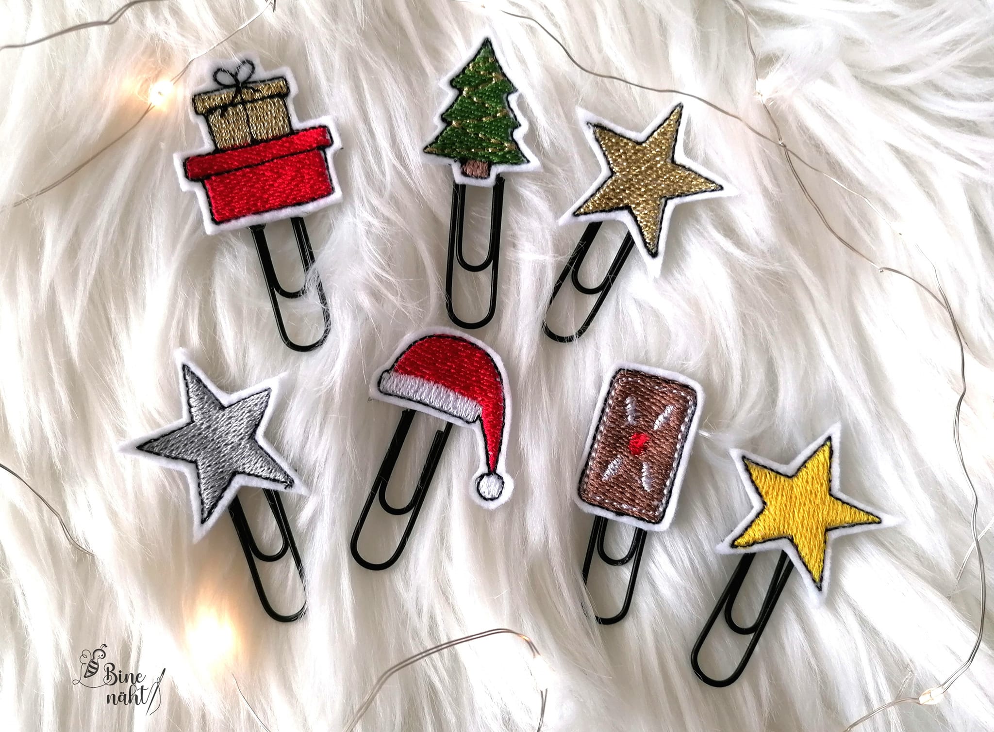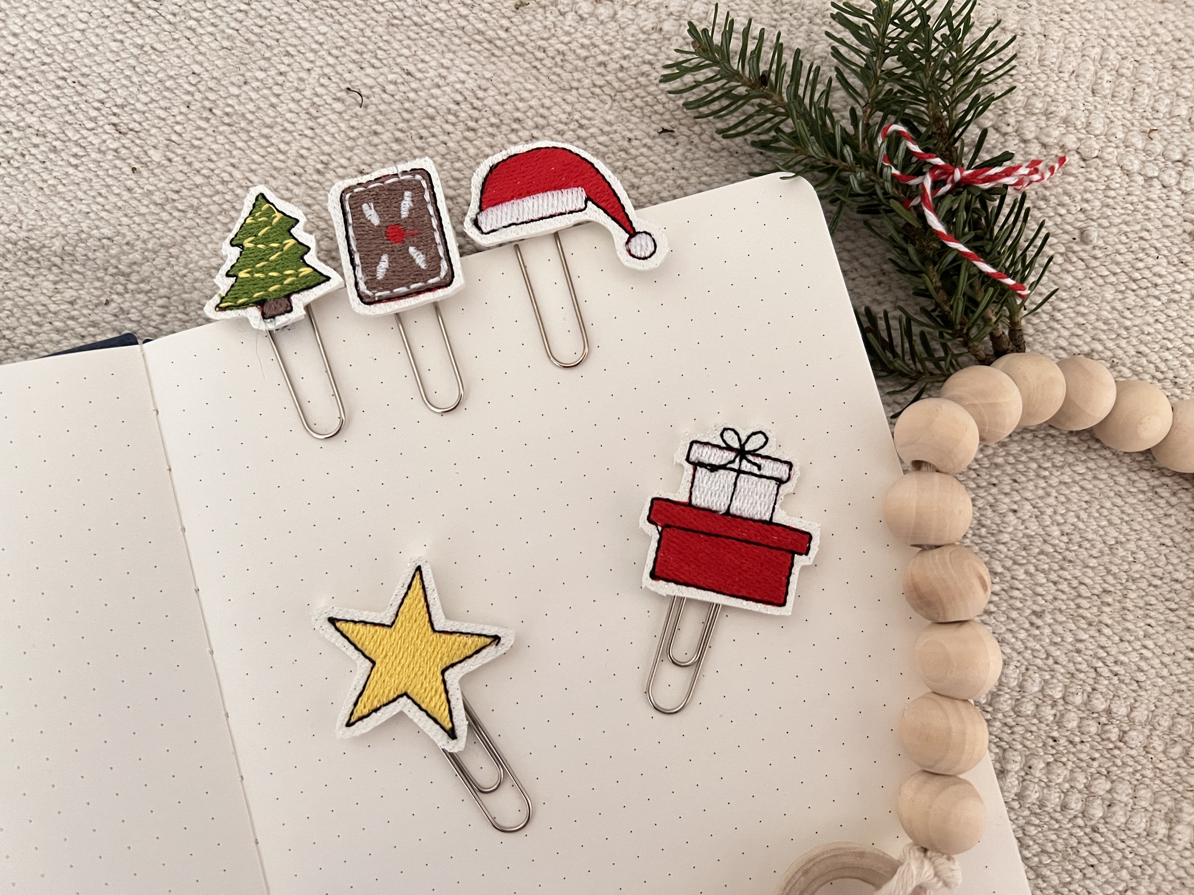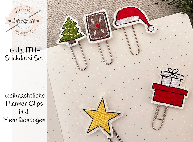 6 teiliges ITH-Stickdatei Set - weihnachtliche Planner Clips. Plane Deine wundervolle Weihnachtszeit.