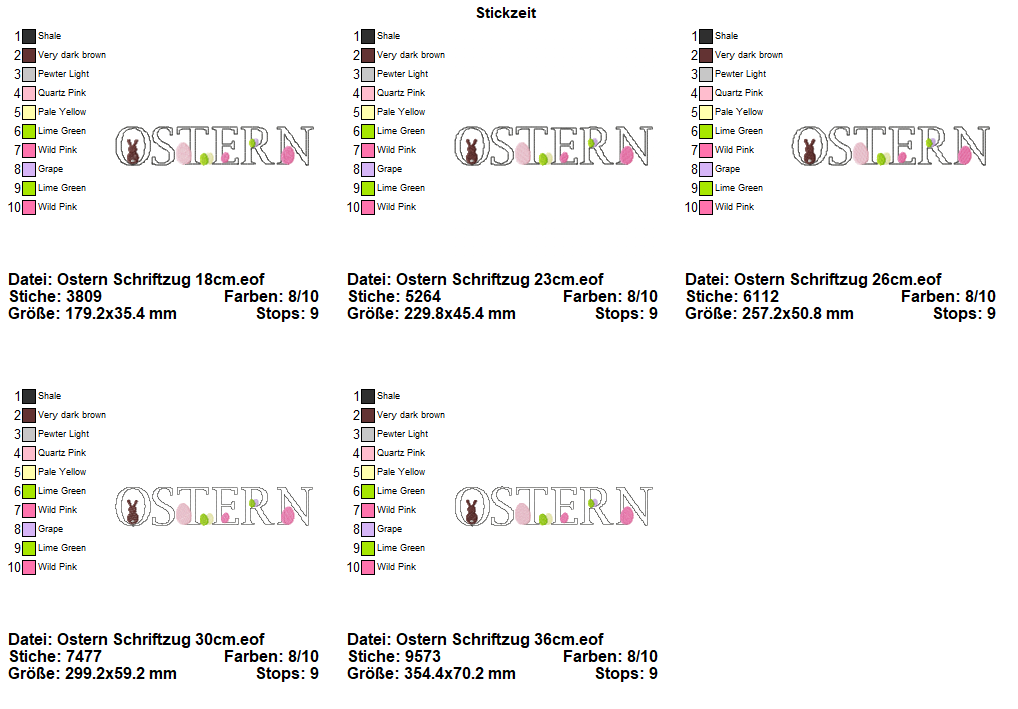 Folgende Stickformate werden in der ZIP-Datei angeboten: PEC - PES - XXX - JEF - JEF+ - SEW - EXP - VIP - VP3 - DST - HUS.
