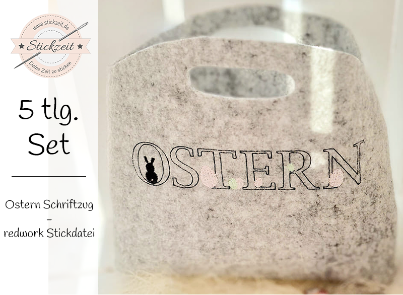 5 teiliges Set - Ostern Schriftzug - redwork Stickdatei ab dem 13x18 bis 24x36 Rahmen.