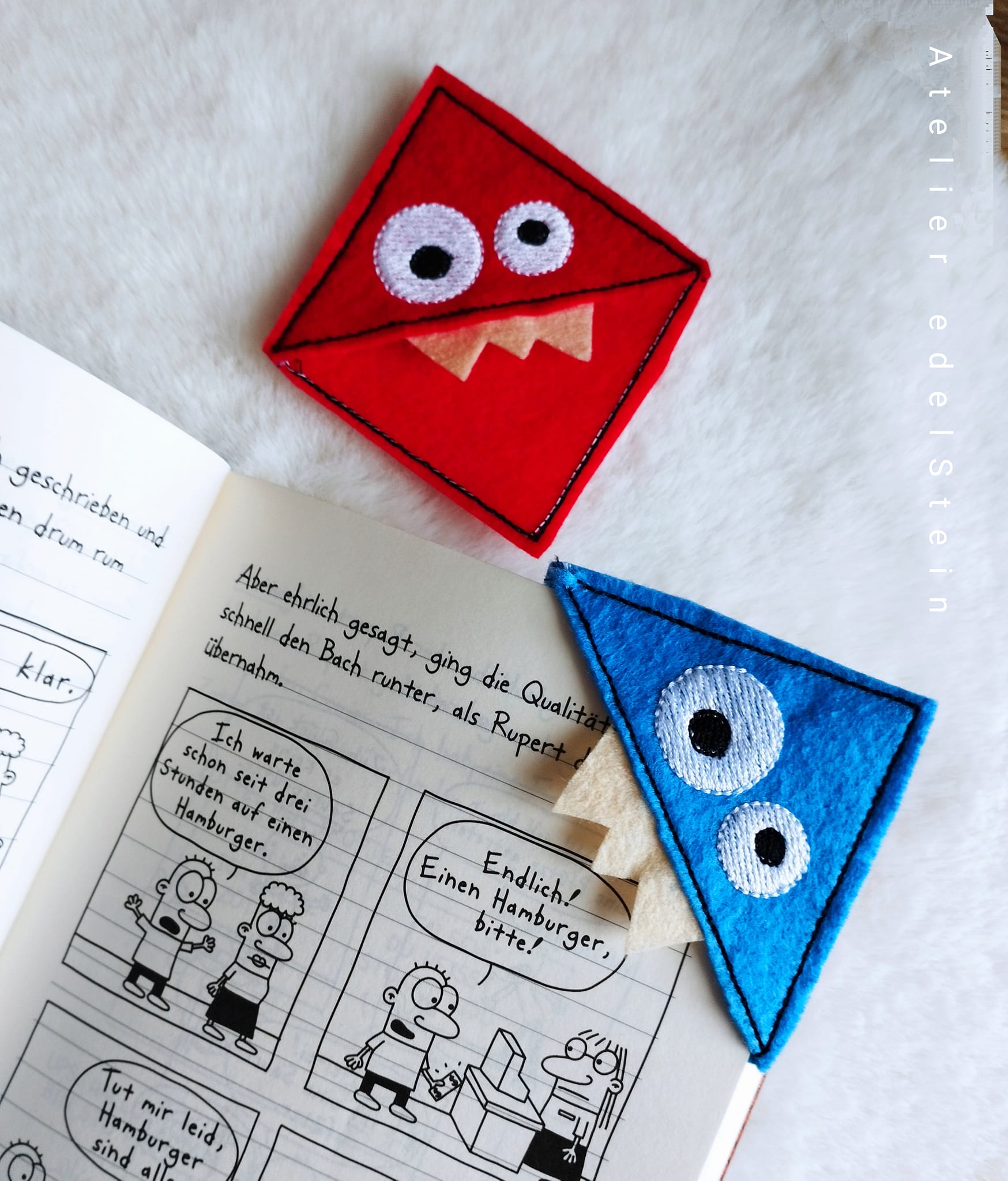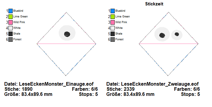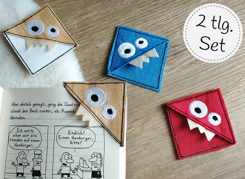 2 teiliges LeseEcken Monster - ITH-Stickdatei Set für den 10x10 Rahmen. Toll für Leseanfänger oder als Goodie für die Schultüte.