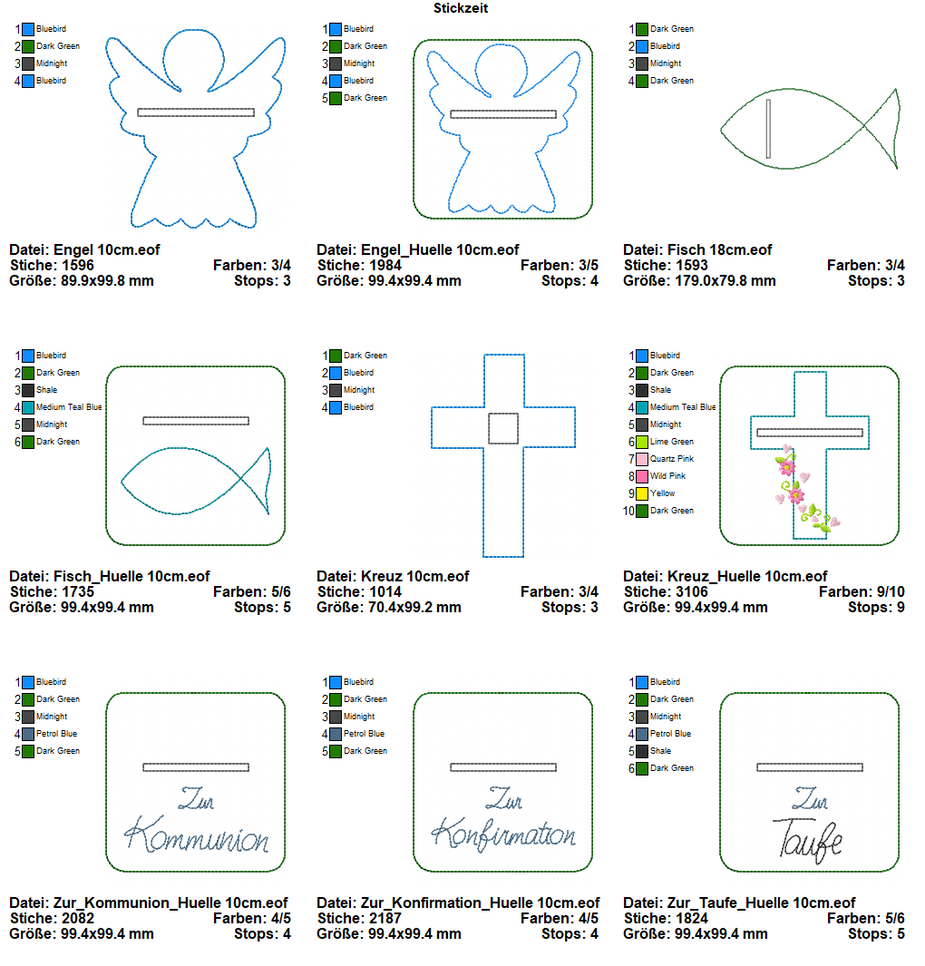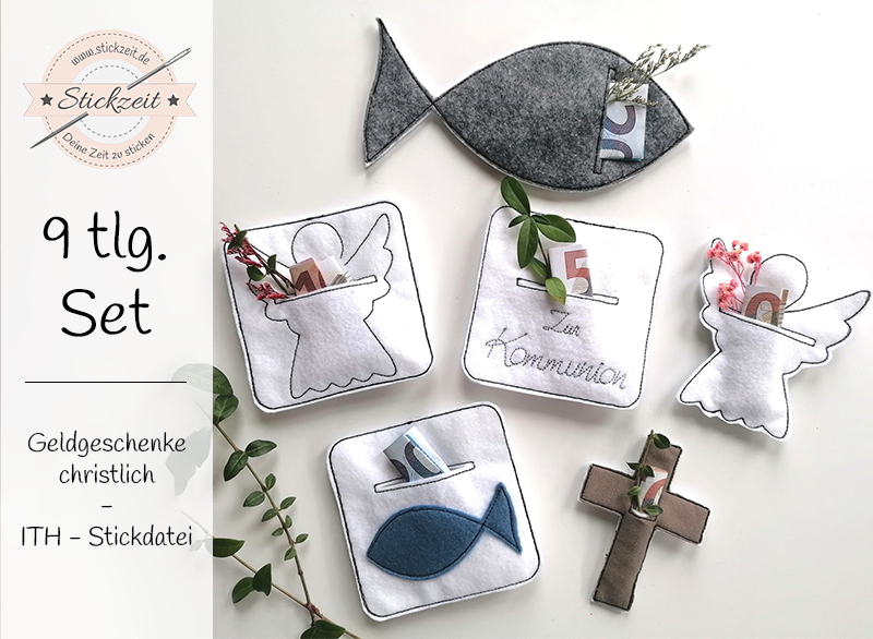 9 teliges ITH-Stickdatei Set - Geldgeschenke christlich für den 10x10 Rahmen.