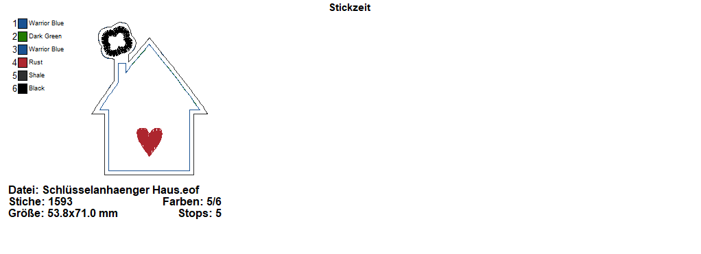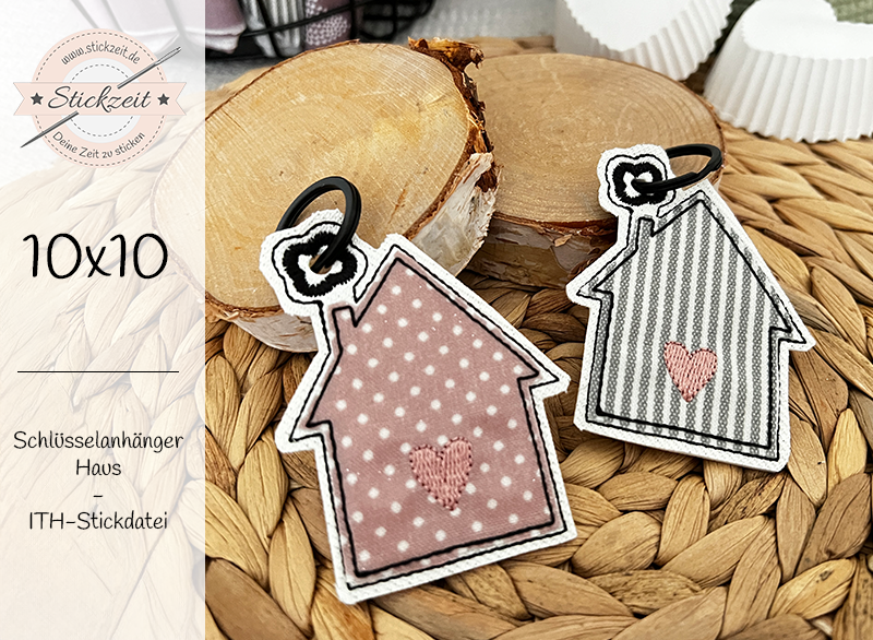 Schlüsselanhänger Haus - ITH-Stickdatei für den 10x10 Rahmen.