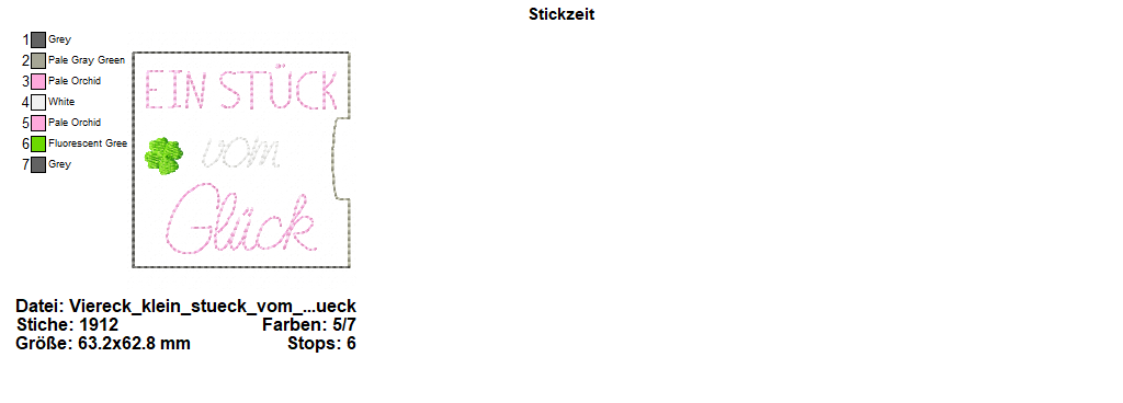 Folgende Stickformate werden in der ZIP-Datei angeboten: PEC - PES - XXX - JEF - JEF+ - SEW - EXP - VIP - VP3 - DST - HUS.