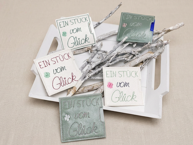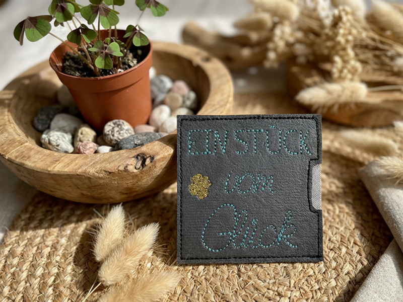 Mit dieser humorvollen ITH-Stickdatei gestaltest du im Handumdrehen eine praktische Schokoladenhülle mit dem Spruch „Ein Stück vom Glück“ direkt im Stickrahmen (In The Hoop). Perfekt als süße Geschenkidee oder kleine Aufmerksamkeit.
