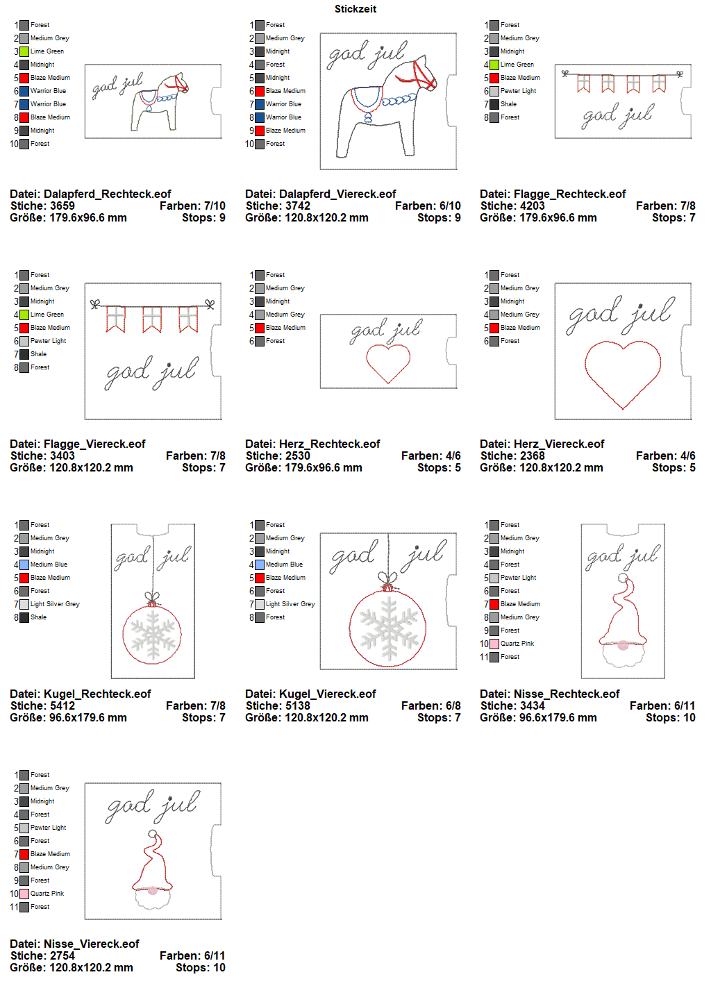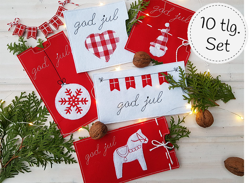 10 teiliges ITH-Set für skandinavisch weihnachtliche Schokohüllen. Passend für alle gängigen Schokogrößen.