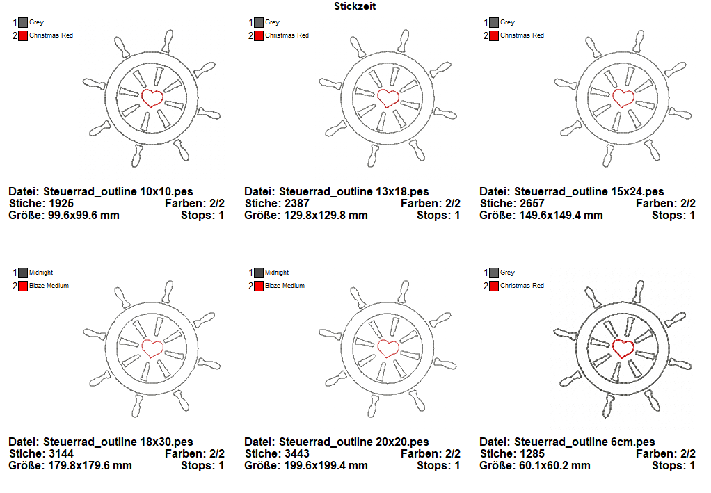Folgende Stickformate werden in der ZIP-Datei angeboten: PEC - PES - XXX - JEF - JEF+ - SEW - EXP - VIP - VP3 - DST - HUS.