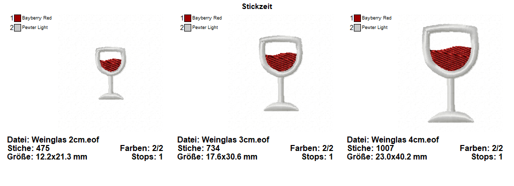 Folgende Stickformate werden in der ZIP-Datei angeboten: PEC - PES - XXX - JEF - JEF+ - SEW - EXP - VIP - VP3 - DST - HUS.