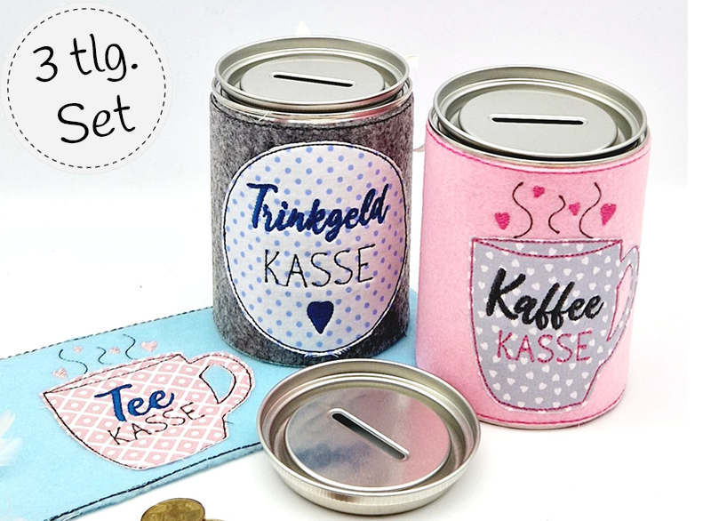 3 teiliges doodle Stickdatei Set - Trinkgeldkasse für den 10x10 Rahmen.