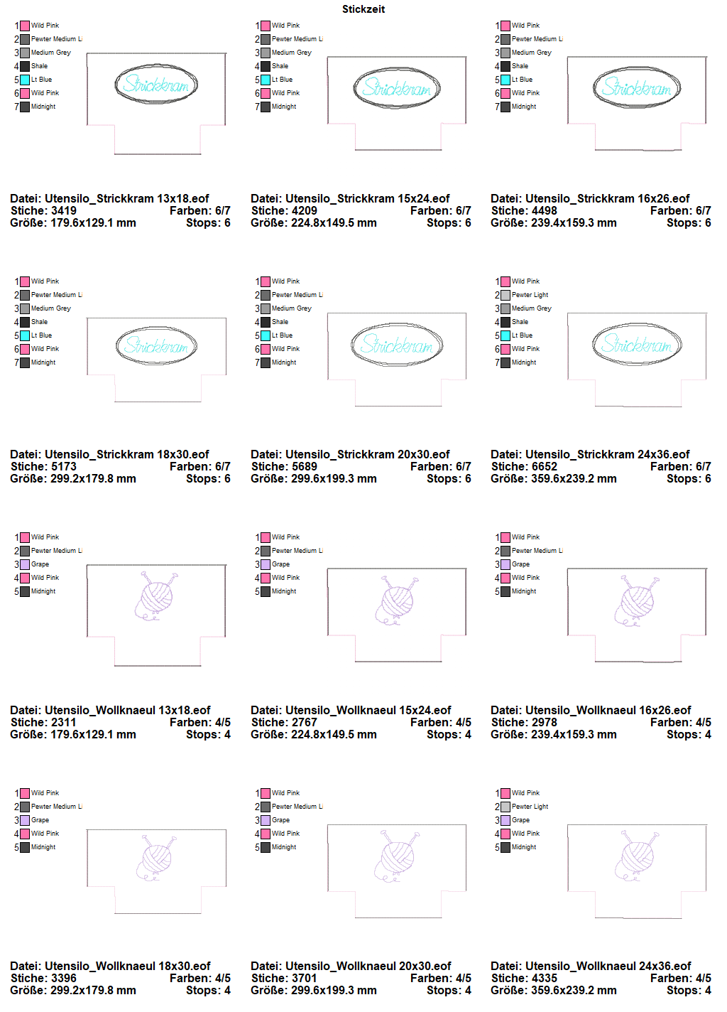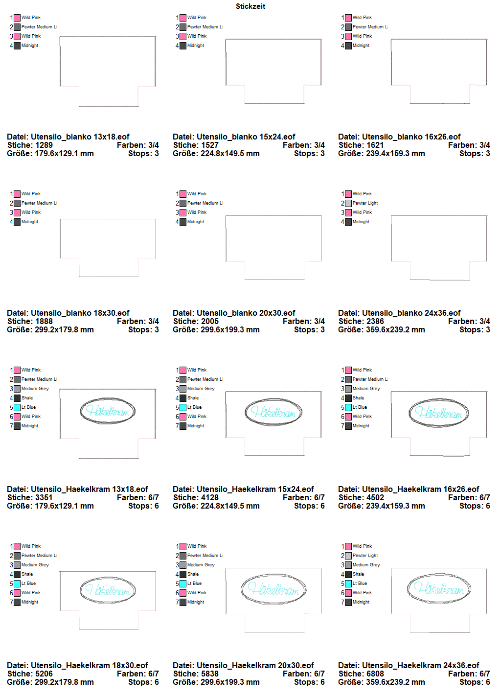Utensilo Set in 6 Größen von 13x18 bis 24x36 für Euren Woll- oder Tüdelkram sowie als Blankodatei. Für die Fertigstellung der Utensilos ist eine Nähmaschine notwendig. Eine bebilderte Schritt für Schritt Anleitung liegt in der ZIP anbei.