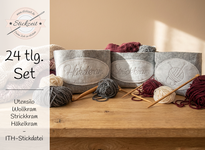 Mit diesem praktischen ITH-Stickdatei-Set gestaltest du im Handumdrehen vielseitige Utensilos für deinen Woll- oder Tüdelkram direkt im Stickrahmen (In The Hoop). Dank Blankodatei kannst du deine Utensilos ganz individuell gestalten.