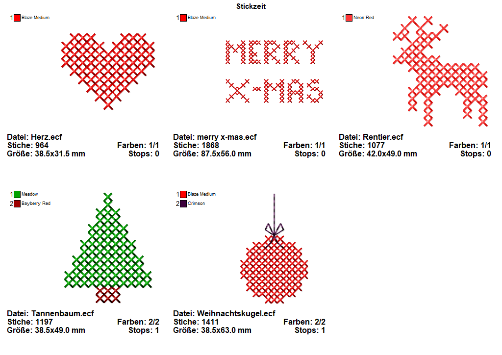 Folgende Stickformate werden in der ZIP-Datei angeboten: PEC - PES - XXX - JEF - JEF+ - SEW - EXP - VIP - VP3 - DST - HUS.