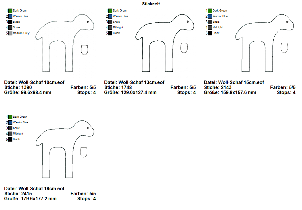4 teiliges ITH-Stickdatei Set - Woll-Schaf - ab dem 10x10 Rahmen zu sticken.