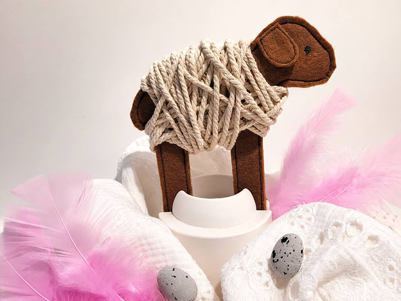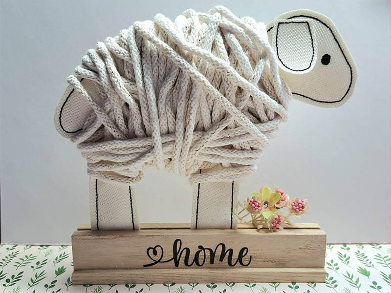 Dieses süße Schaf wird direkt in der Stickmaschine gefertigt (ITH – In the Hoop) und ist ein besonderer Hingucker. Nach dem Sticken wird der Körper einfach mit Wolle umwickelt – so entsteht im Handumdrehen ein flauschiges kleines Wollschaf mit natürlichem Look.