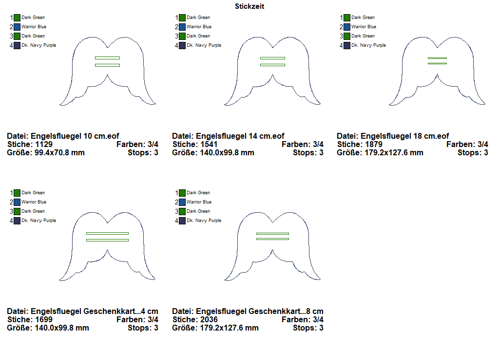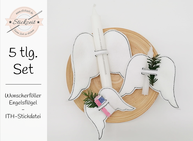 5 teiliges ITH-Stickdatei Set - Wunscherfüller Engelsflügel - ab dem 10x10 Rahmen.