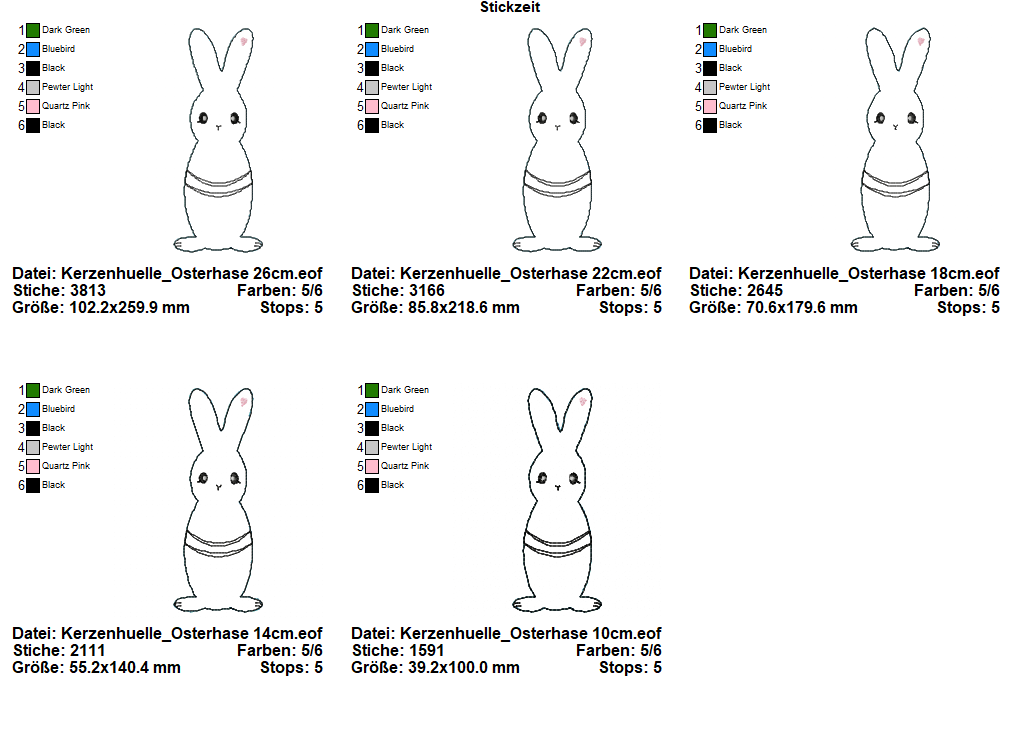 Folgende Stickformate werden in der ZIP-Datei angeboten: PEC - PES - XXX - JEF - JEF+ - SEW - EXP - VIP - VP3 - DST - HUS.