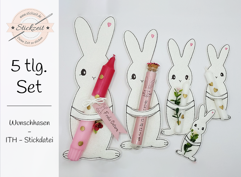 5 teiliges ITH-Stickdatei Set - Wunschhase. Verschenke zauberhafte Wünsche zu Ostern.