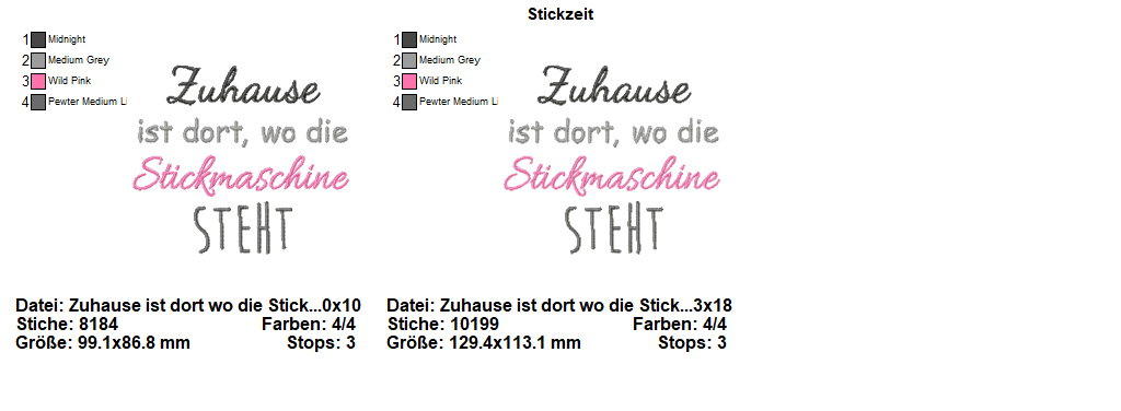 2 teilige Stickdatei Set Spruch - "Zuhause ist dort, wo die Stickmaschine steht", für den 10x10 und 13x18 Rahmen.